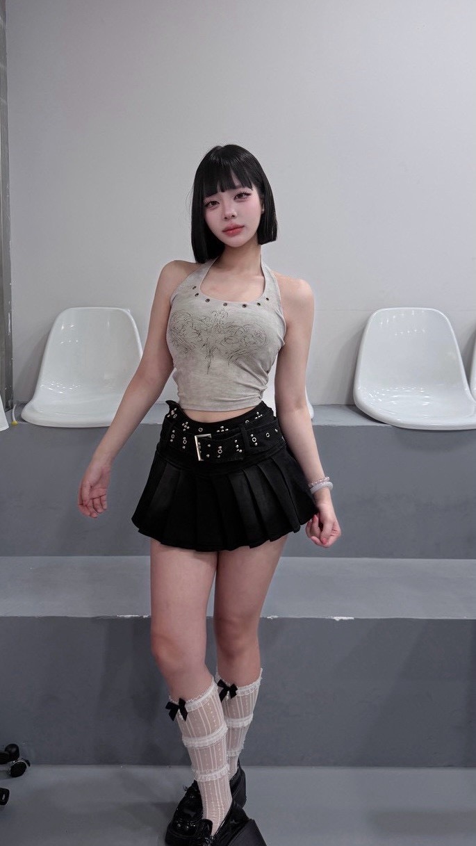 刷白鉚釘百褶牛仔裙